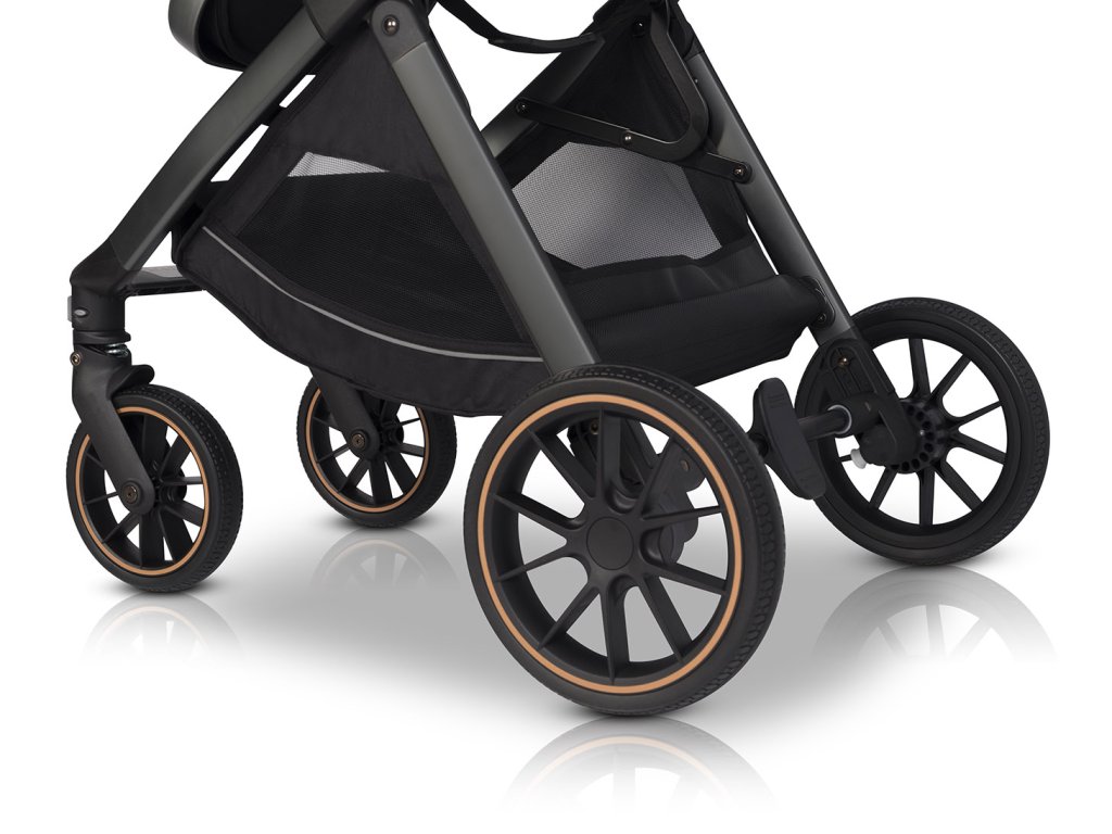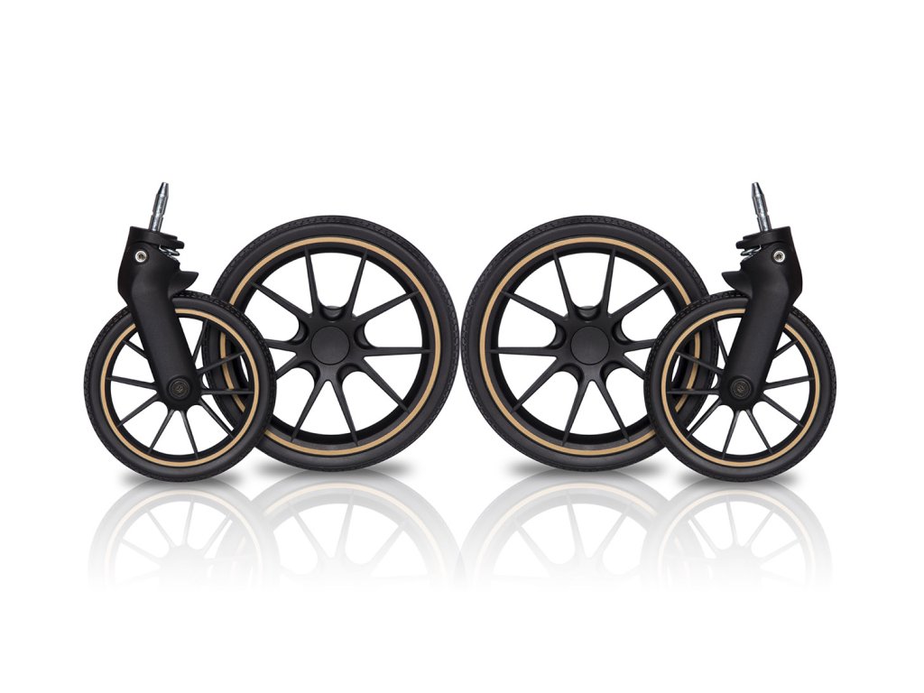 Jednoduchá instalace: Montáž těchto kol je velmi jednoduchá a nevyžaduje žádné nástroje. Kola jsou připravena k okamžitému nasazení na kočárek, což usnadňuje přechod mezi různými typy povrchů.