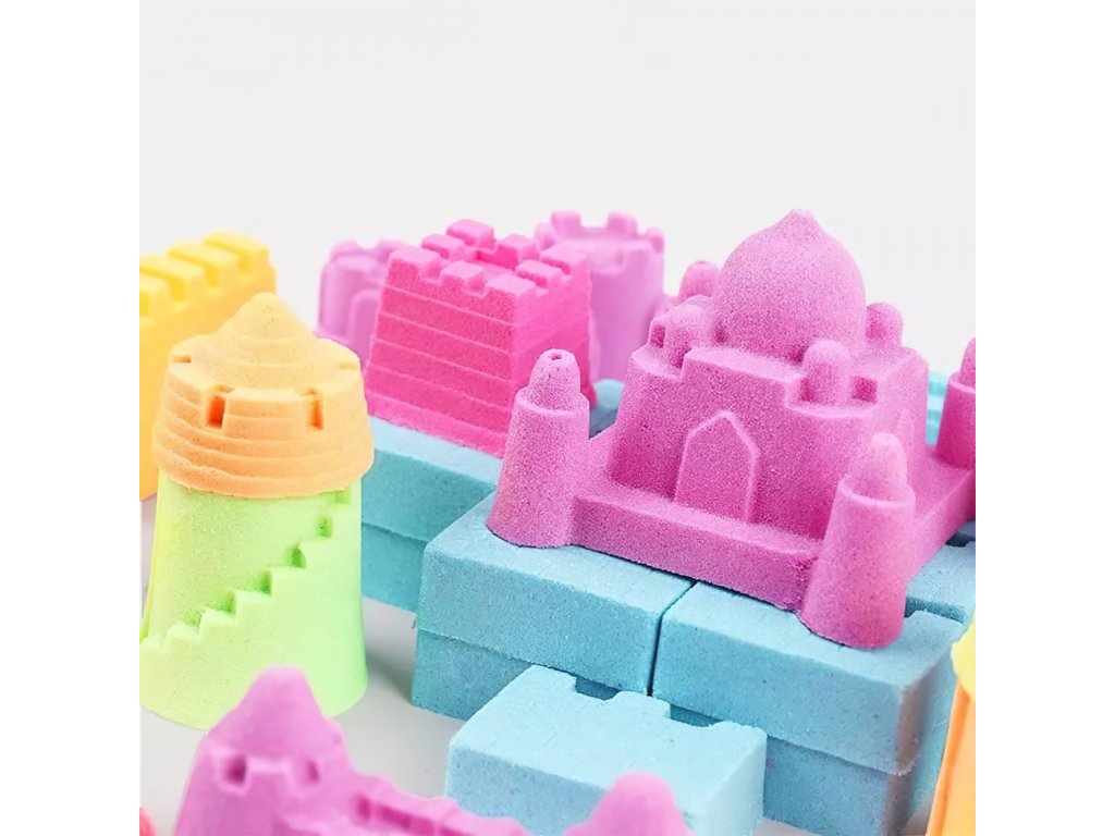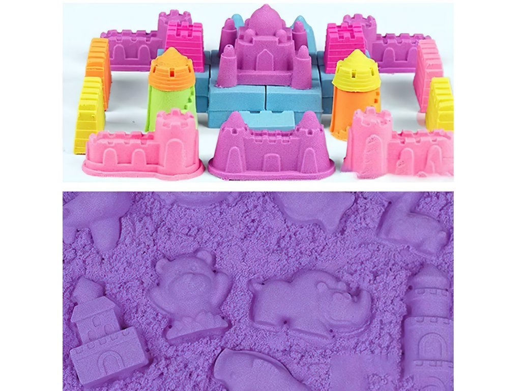Kinetický písek není pouze zábavnou hračkou, ale má také terapeutické, relaxační a uklidňující účinky. Podporuje rozvoj manuálních dovedností, smyslové integrace a povzbuzuje kreativitu. S touto sadou se vaše dítě snadno ponoří do světa fantazie, vytváří hrad, zdobí figurky a realizuje nejrůznější kreativní nápady.